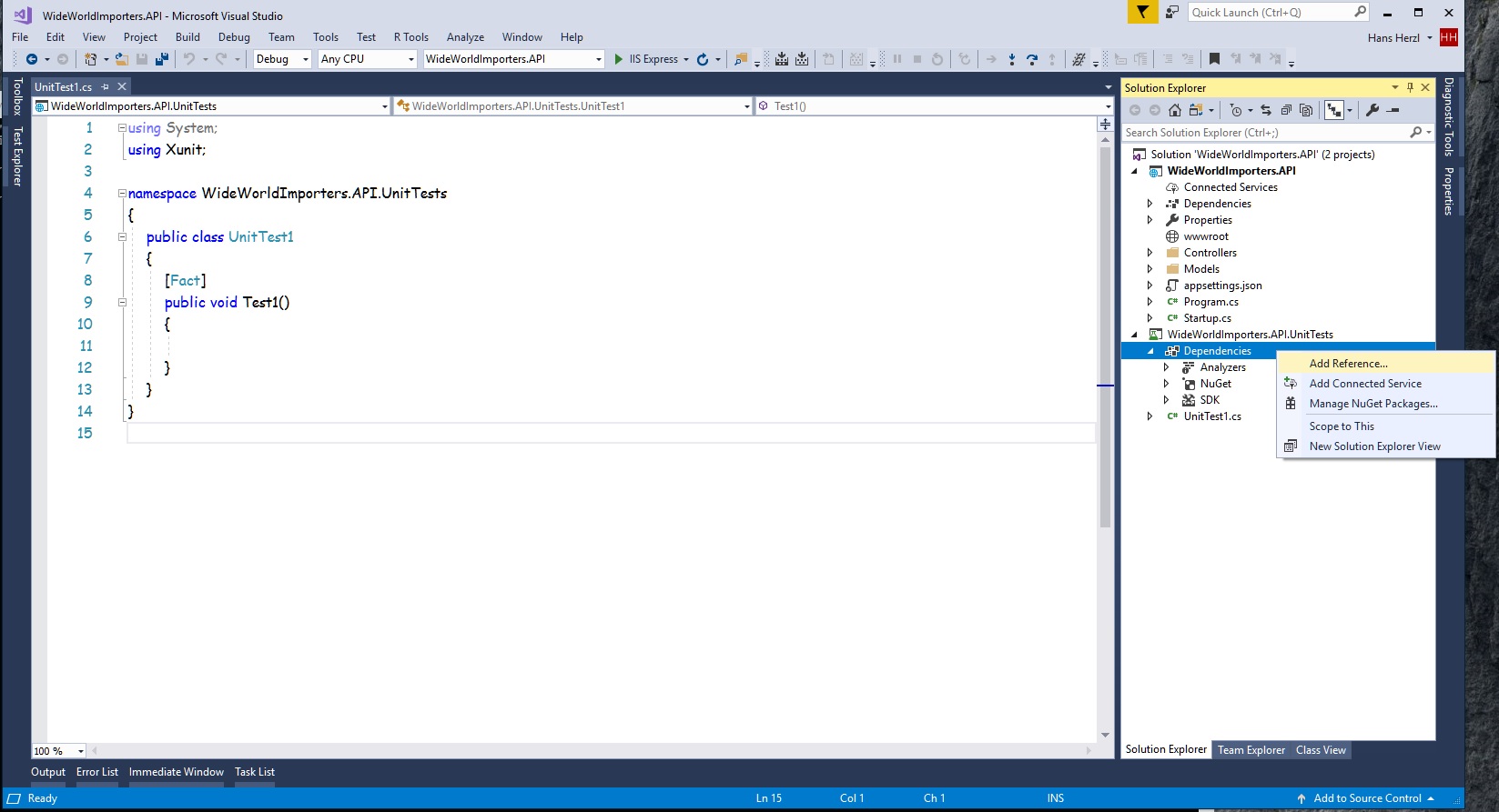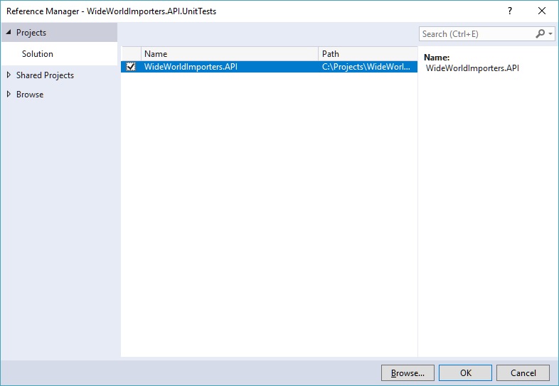 Manage references for Sample.API.UnitTests project: