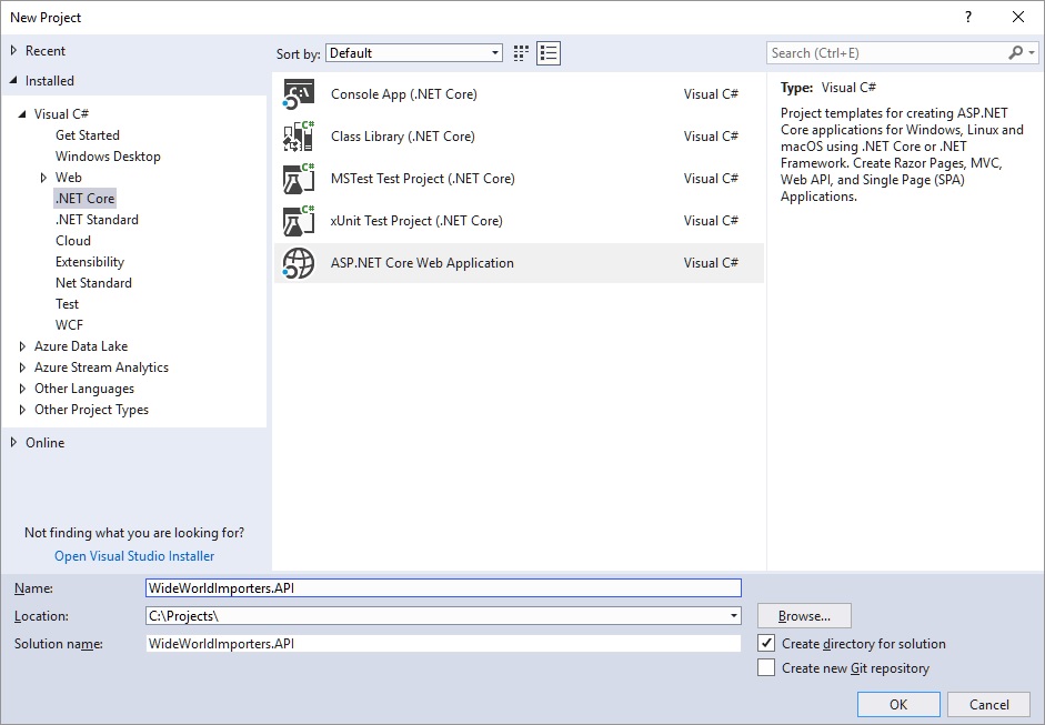 Go to File > New > Project -->Go to Installed > Visual C# > .NET Core