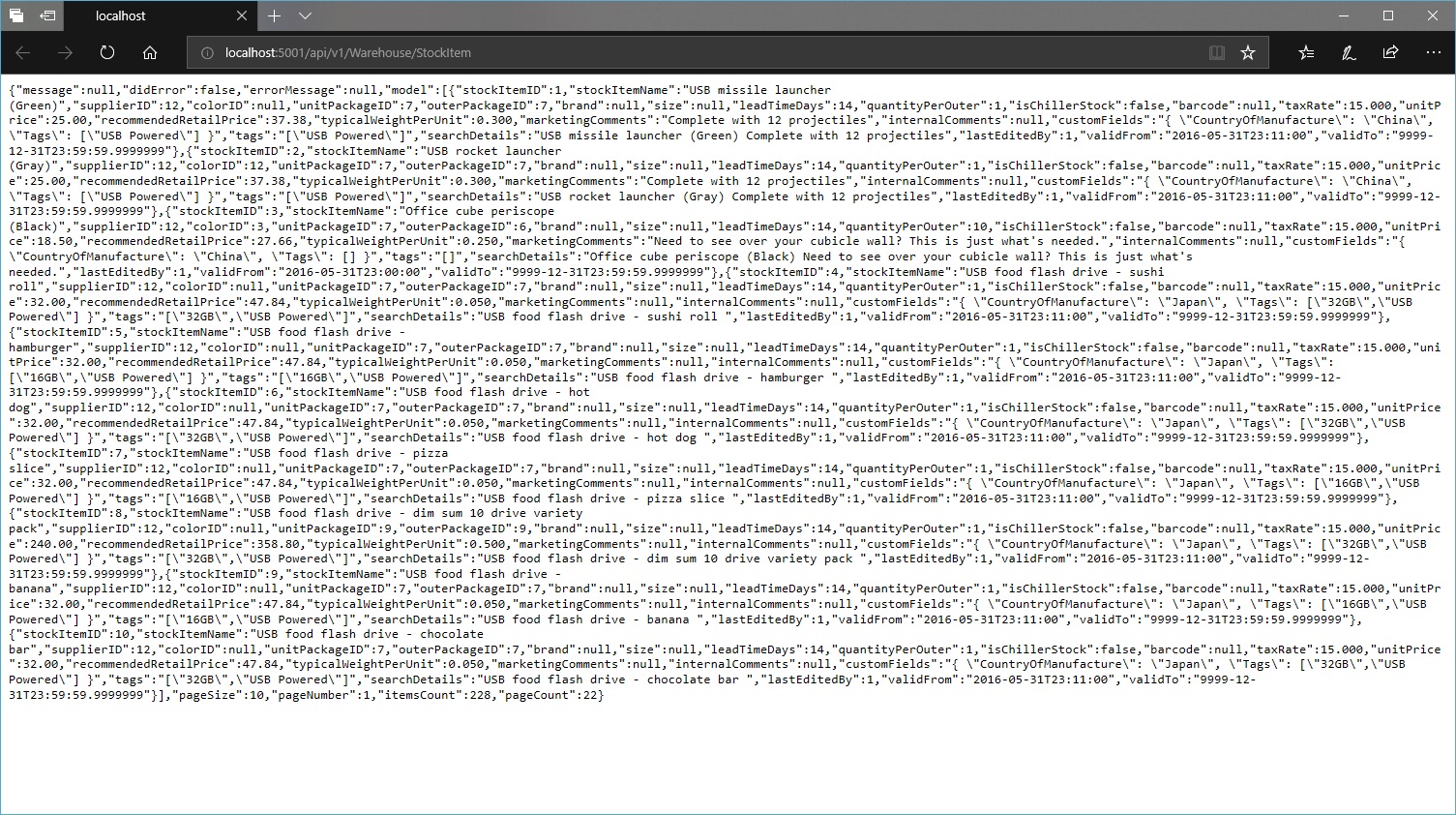 Now, press F5 to start debugging for Web API project, if everything it's OK, we'll get the following output in the browser: